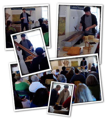 The Penn-Jersey Basketry Guild celebrated their 25th Anniversary and invited Eric to give a presentation at their special celebratory meeting held on the Jersey Shore. He spoke about his career and gave a demonstration on bending wood. At the end of his talk, it was time for ‘questions and answers.’ One person asked “Where do you get your design inspiration from?” To be funny, I was in the back of the room wildly pointing at myself. I guess he didn’t see me! Afterwards, he told me he thought I was signaling him to wrap it up and he was talking too long. We both got a good laugh.