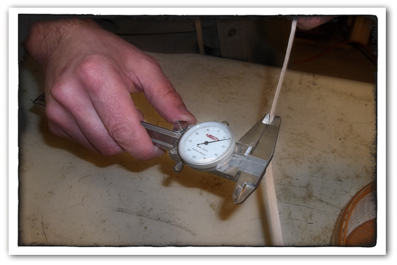Eric: I am measuring the material’s thickness with a Micrometer. This tool measures in 1000th of an inch increments. I’m looking for a finish thickness of 12 to 14 1000th of an inch for my mini weavers.