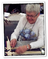 Teaching at the table next to Eric’s was Darlene Hyry. She hosted one of Eric’s classes down in Florida two years ago. She also showed us her extensive basket collection in her home. The photo is a little blurry because she was busy weaving and moving and I did not want to interrupt her (yeah… I was trying to blame it on her but the real reason is because I had my camera on the wrong setting most of Saturday. So I apologize for the out-of-focus pics).